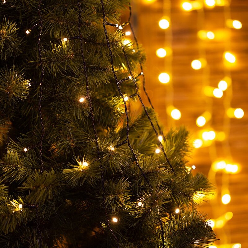 Елочная гирлянда с кольцом NEON-NIGHT 7 нитей по 1,8 метра, 8 режимов, 126 тепло-белых светодиодов, тёмно-зеленый провод