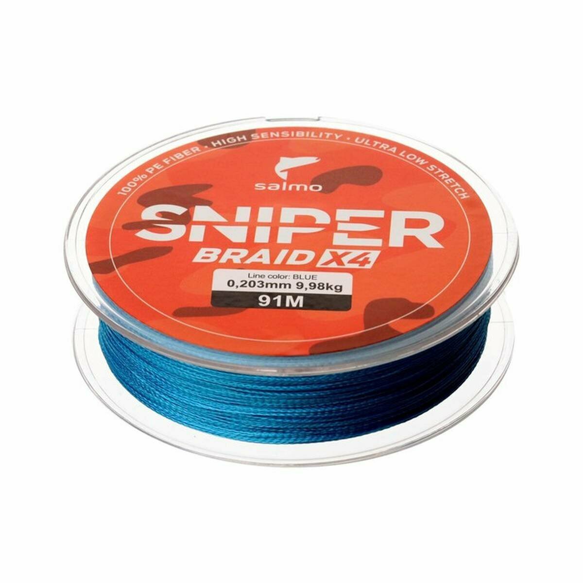 Шнур плетеный Salmo Sniper BRAID X4, диаметр 0.2 мм, тест 9.98 кг, 91 м, синий, цвет голубой
