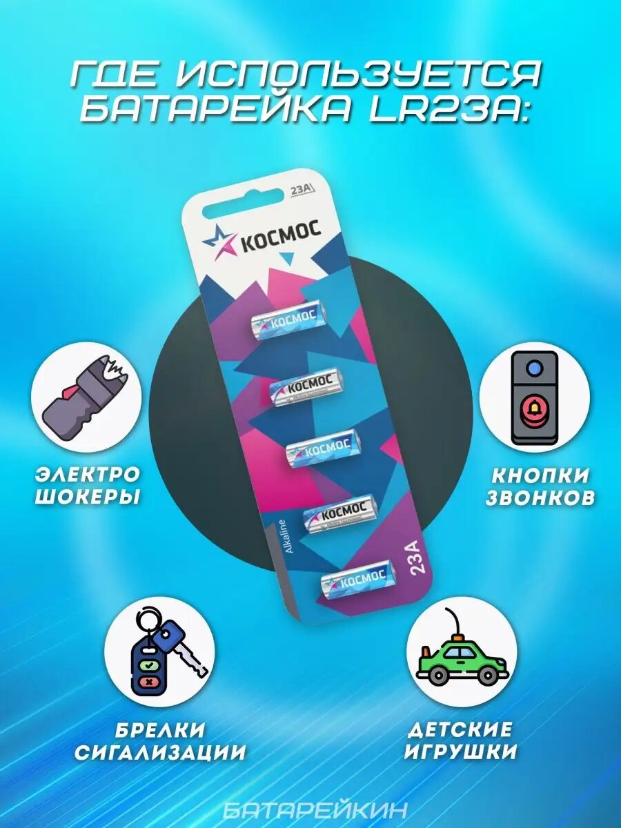 Элемент питания алкалиновый для пультов сигнализаций 23А космос KOC23A5BL (1 шт.)