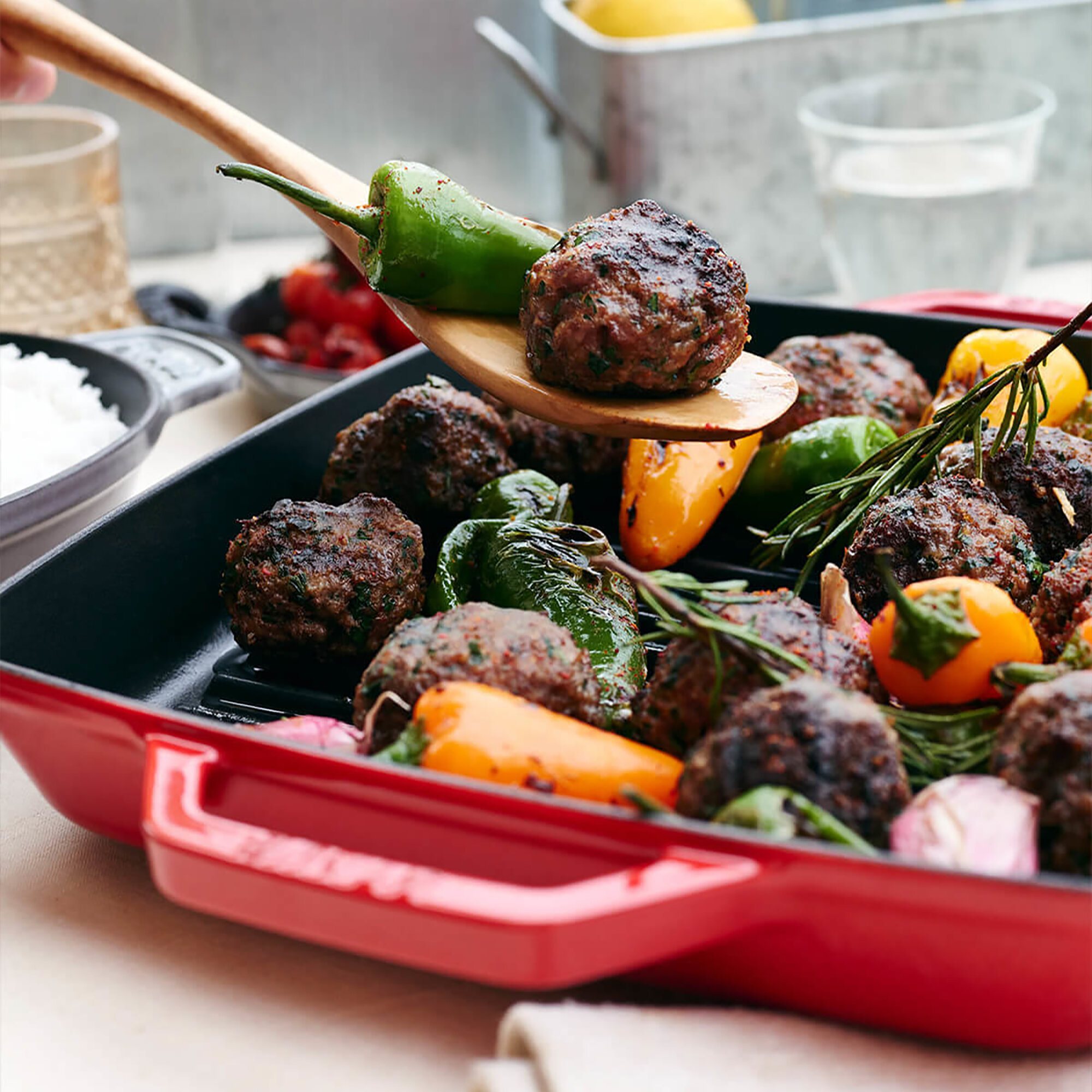 Сковорода-гриль квадратная с 2 ручками Staub, вишневая, 23 см