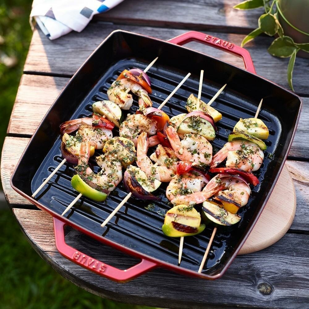Сковорода-гриль квадратная 23х23 см с 2 ручками Staub, вишневая (12012306)