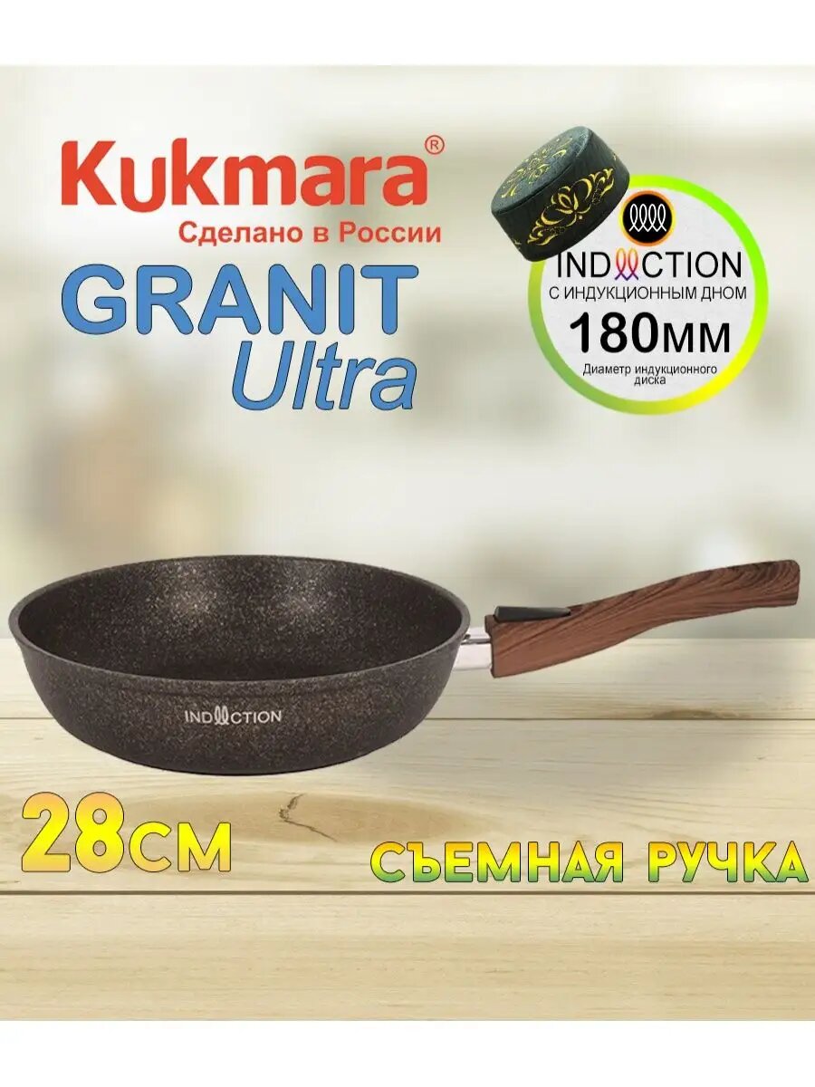 Сковорода с антипригарным покрытием со съемной ручкой Kukmara (Granit Ultra Induction original) сгои282а, 28 см