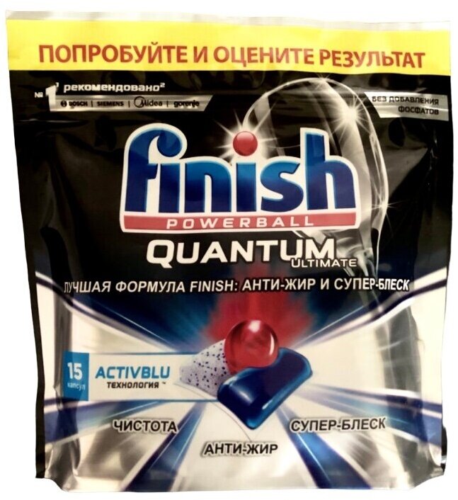 Капсулы для посудомоечной машины Finish Quantum Ultimate капсулы (original) дойпак, 15 шт.