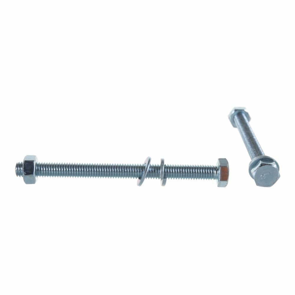 Болт (DIN933) в комплекте с гайкой (DIN934), шайбой (DIN125), шайбой пруж. (DIN127), M8 x 100 мм, 2 шт, ЗУБР {303436-08-100}
