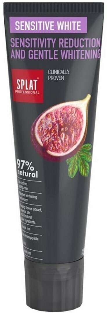 Зубная паста Splat Pro-Biome Sensitive White с экстрактом инжира, снижение чувствительности и бережное отбеливание эмали, без фтора, 125 мл