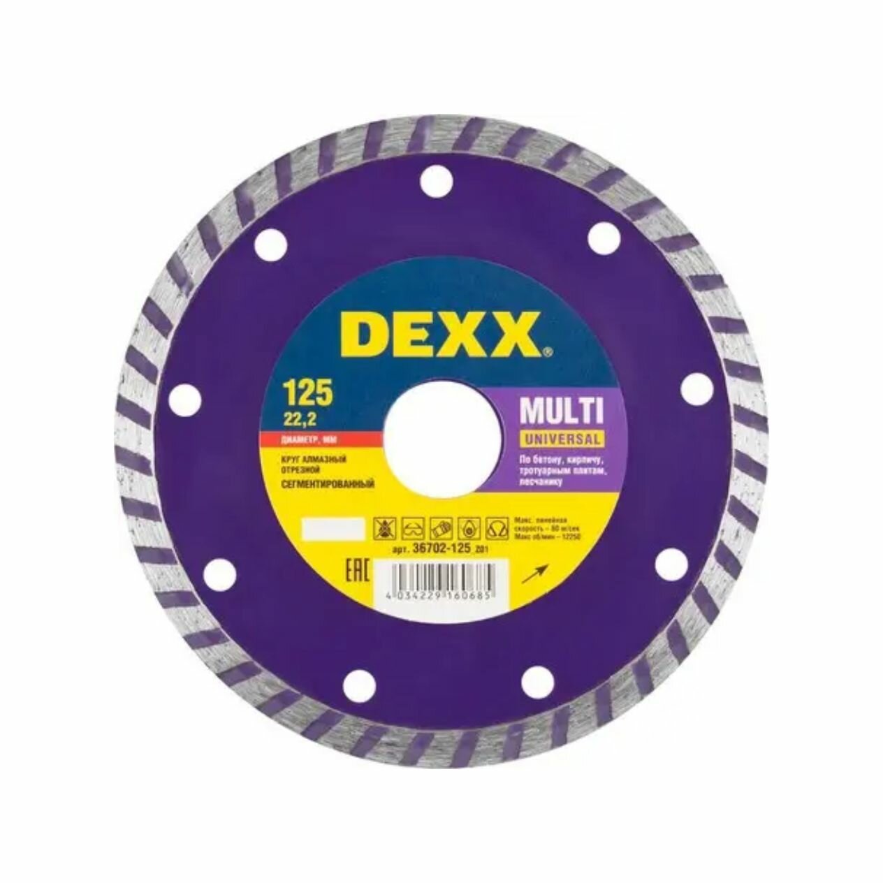 Диск алмазный DEXX MULTI UNIVERSAL 125 мм, отрезной сегментный по бетону, кирпичу, тротуарным плитам, песчанику (125х22.2 мм, 7х1.9 мм) ( 36701-125_z01 )