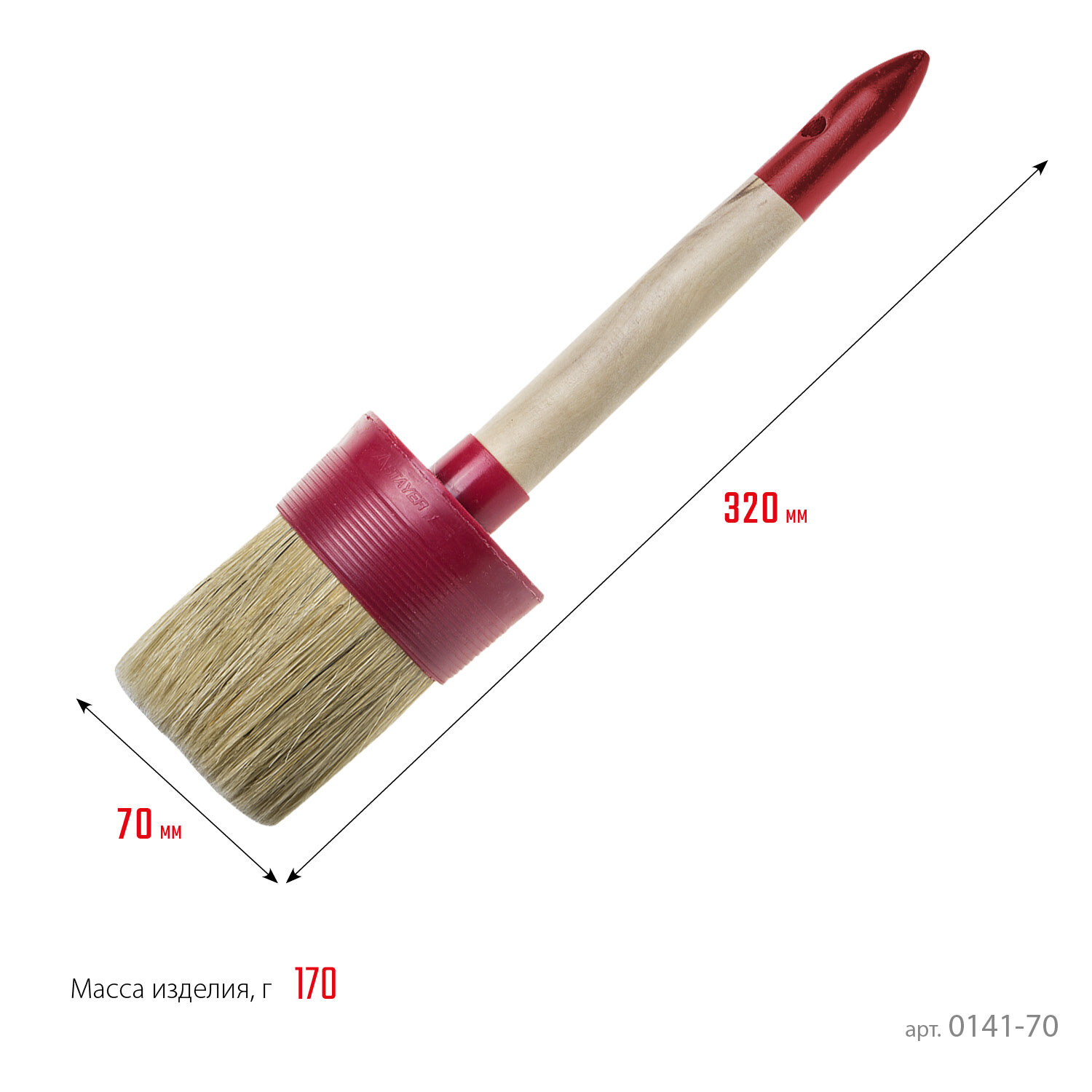 Круглая кисть STAYER 70 мм пластмассовый корпус светлая натуральная щетина деревянная ручка (0141-70)