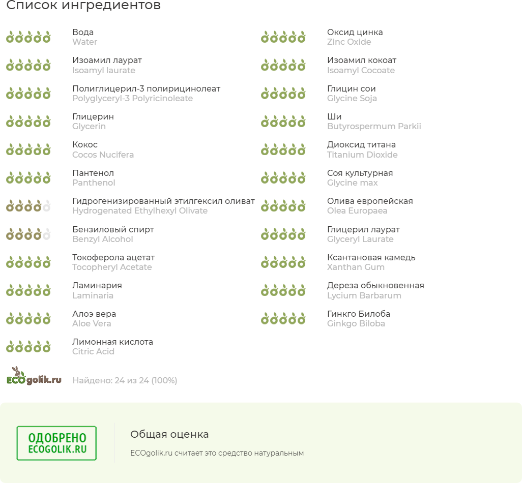 | Плюсы: | Хорошая защита и безвредно для кожи, на лице не вызывает раздражение |