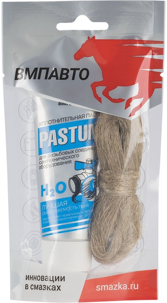 Паста ВМП авто "Pastum H2O", сантехническая, для уплотнения резьбовых соединений, тубик, комплект со льном, 70гр.+15гр.