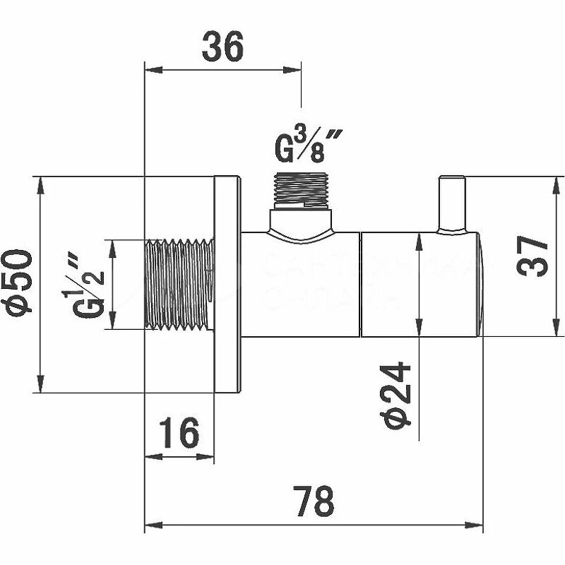 Вентиль запорный латунь 3/4дюйм еврослот жел., RTP 41412 (1 шт.)