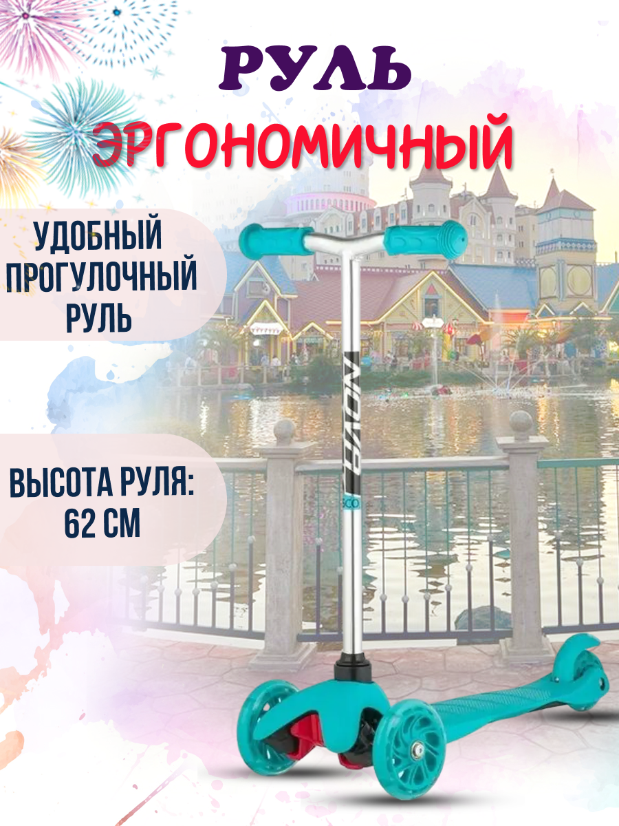 Самокат NOVATRACK Disco-kids Start, детский, бирюзовый