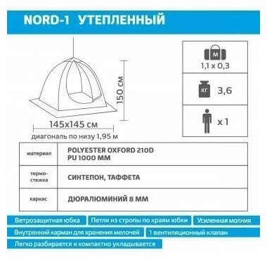 Палатка зимняя зонт 1-местная NORD-1 Helios