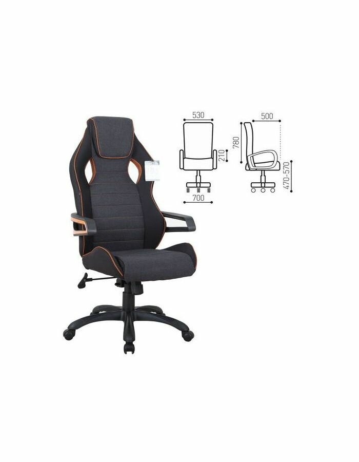Кресло компьютерное BRABIX "Techno Pro GM-003", ткань, черное/серое, вставки оранжевые, 531813, 1шт. в компл