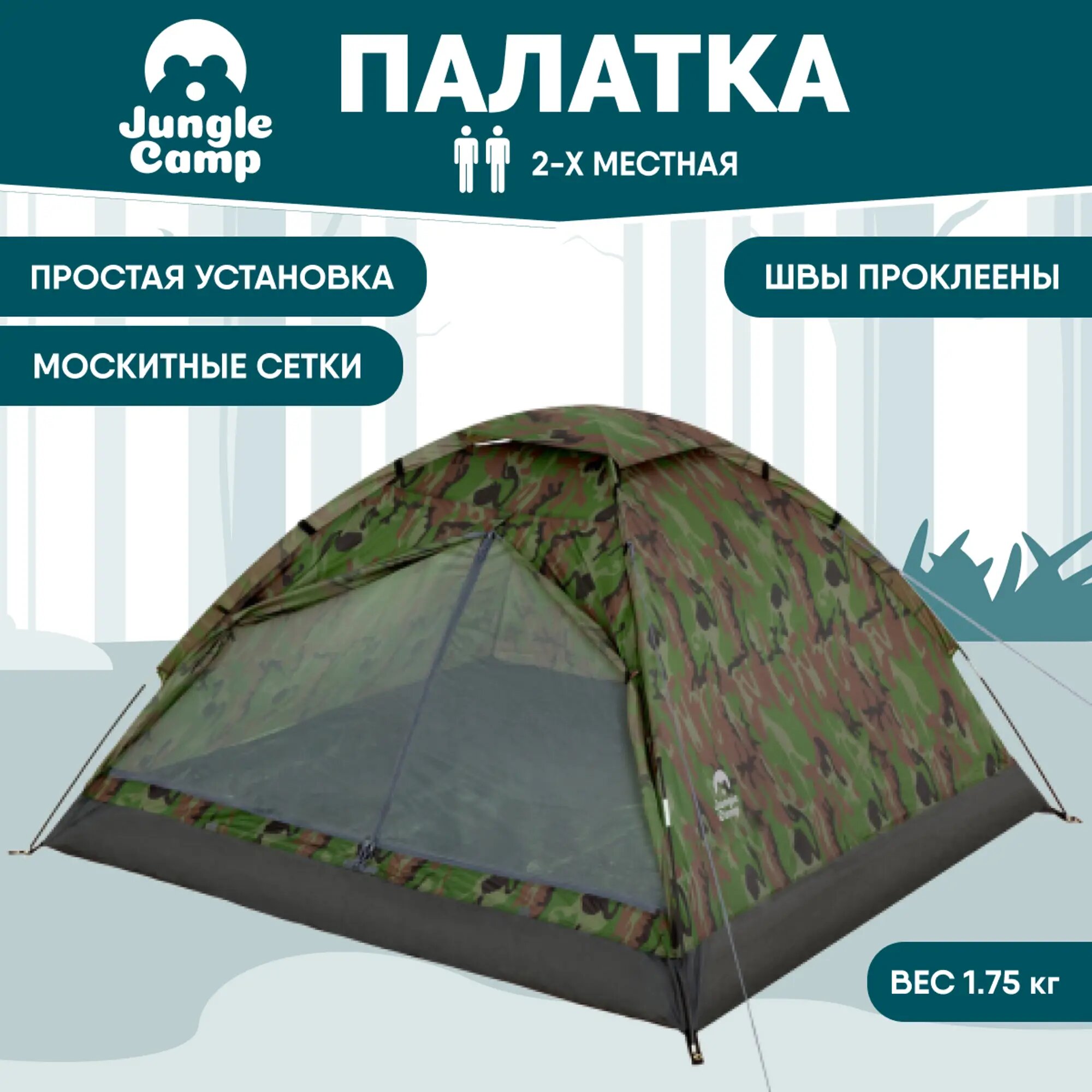 Палатка двухместная JUNGLE CAMP Fisherman 2, цвет: камуфляж