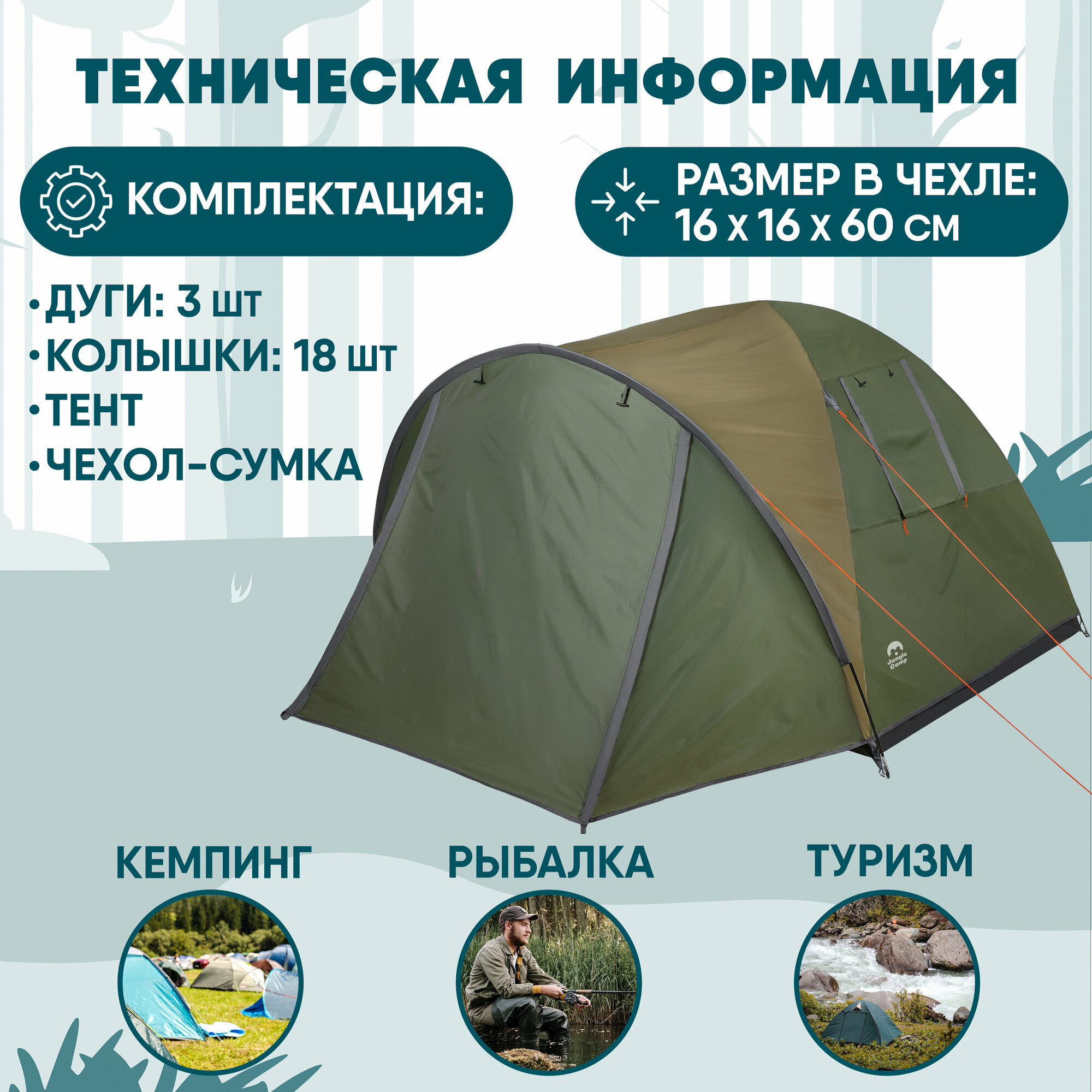 Палатка Jungle Camp Vermont 2, цвет: зеленый интересное: