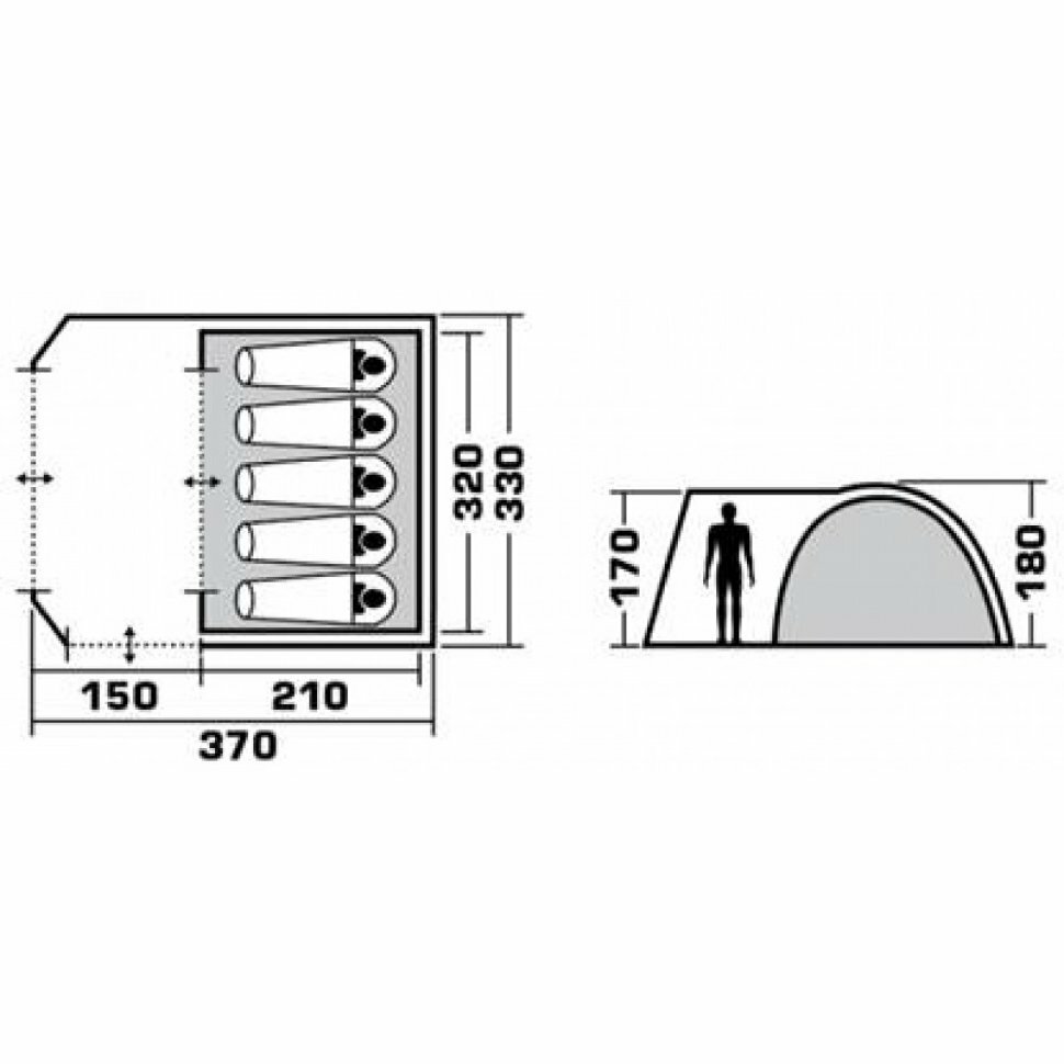 | Длина внешней палатки | 370 см |