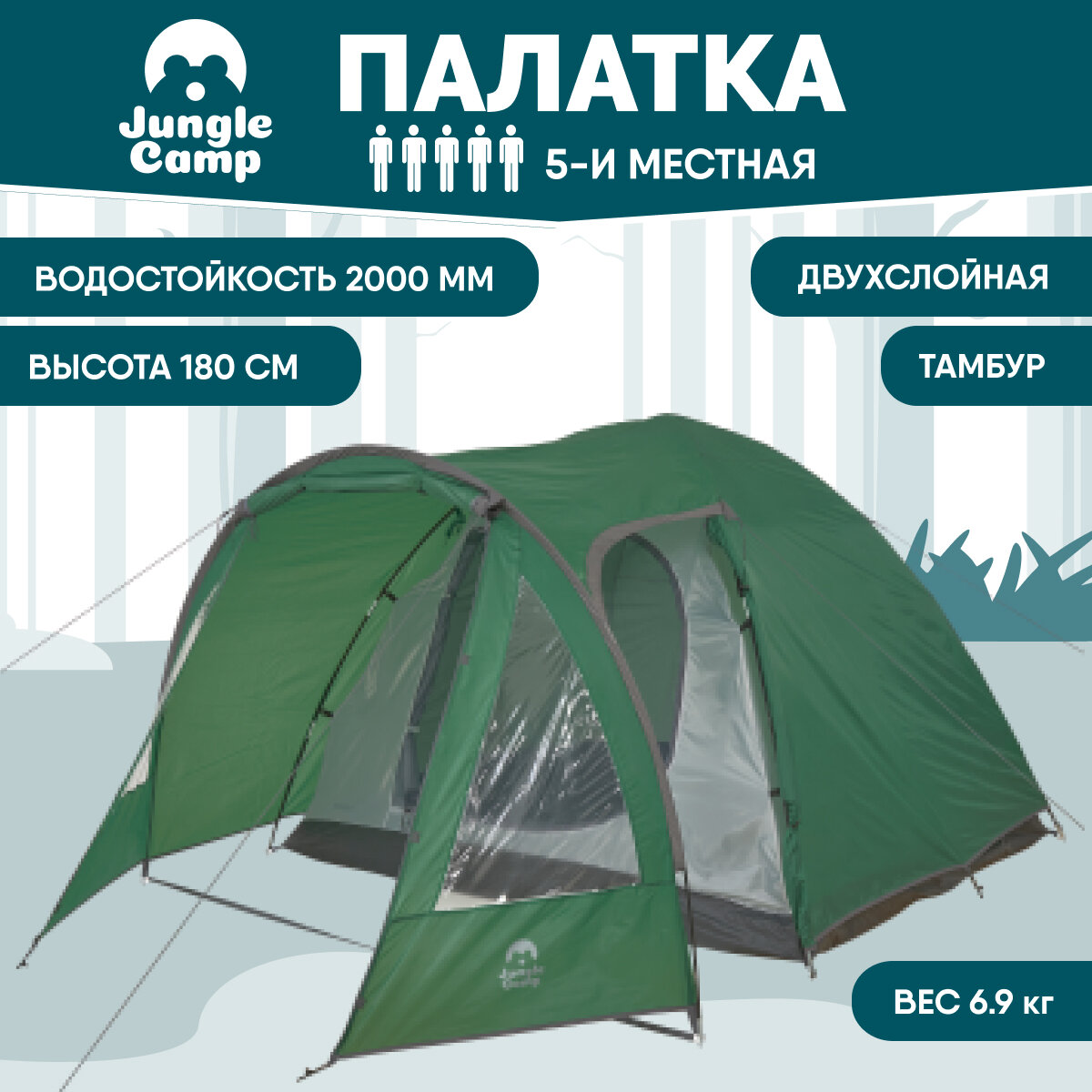 Палатка пятиместная JUNGLE CAMP Texas 5, зеленый