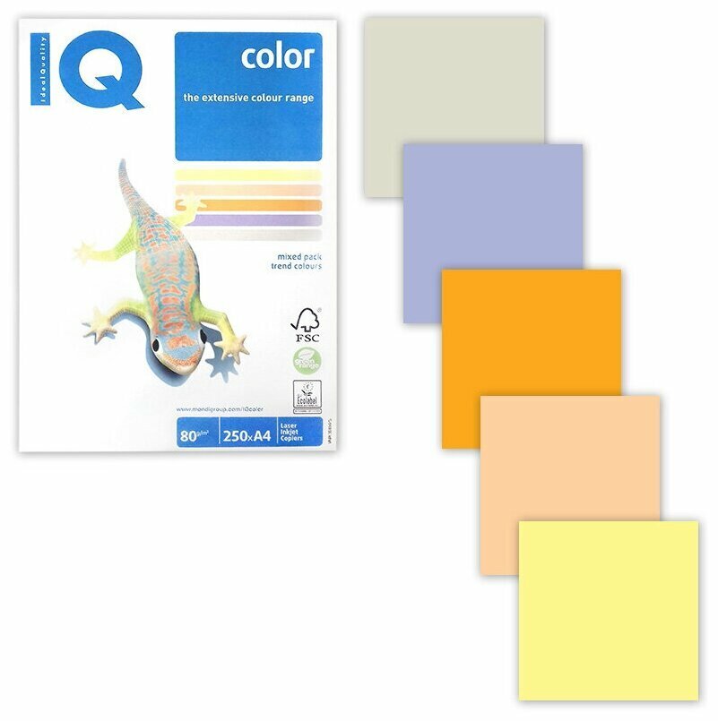 Бумага IQ "Color Pastell Mixed Packs" А4, 80г/м2, 250л. (5 цветов), 1 шт