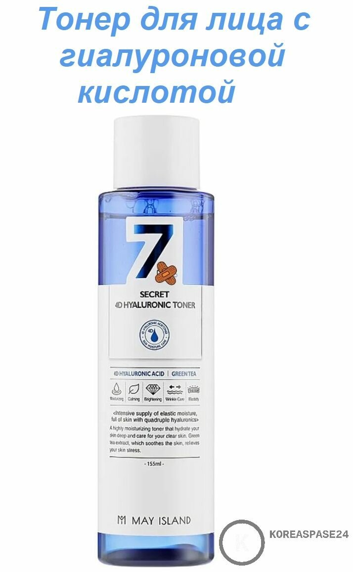 MAY ISLAND Тонер с гиалуроновой кислотой 7Days Secret 4D Hyaluronic, 155 мл