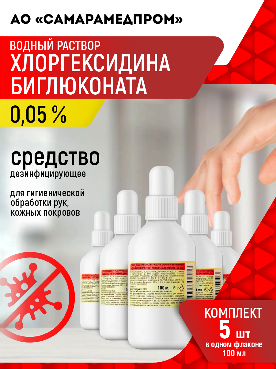 Купить Дезинфицирующее средство Хлоргексидина биглюконата водный раствор 0.05% 100 мл. х 5 шт.