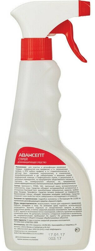 Средство дезинфицирующее "Авансепт - спрей" Объём: 0.5мл