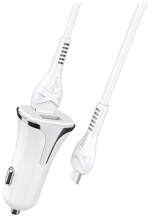 Автомобильное зарядное устройство Hoco Z31 Universe + кабель microUSB, white