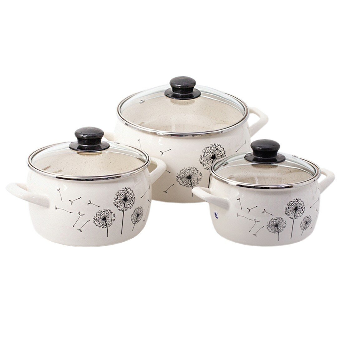Купить Набор эмалированных кастрюль Metrot Одуванчик, 6 предметов (кастрюли 2,4, 3,3, 5,7 л), с крышками