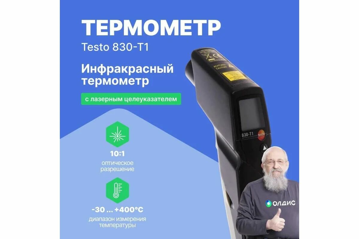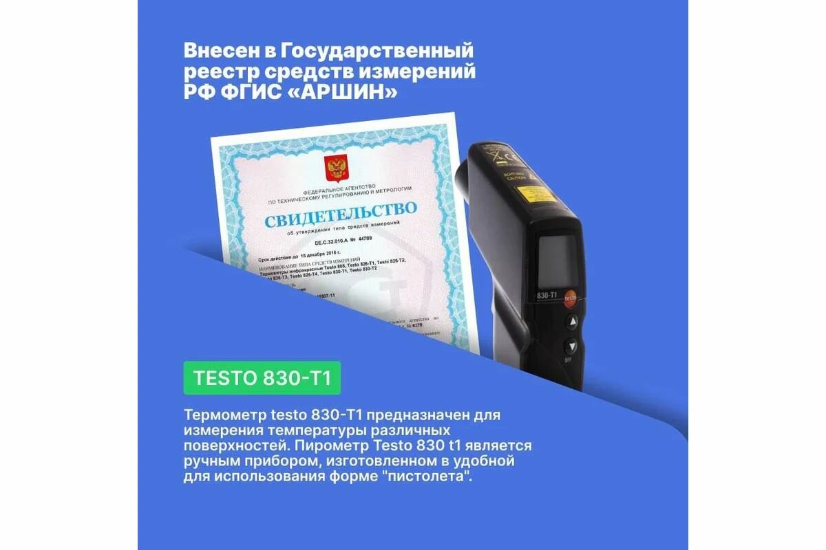 Инфракрасный термометр с лазерным целеуказателем Testo 830-T1 оптика 10:1, с поверкой 0560 8311П интересное: