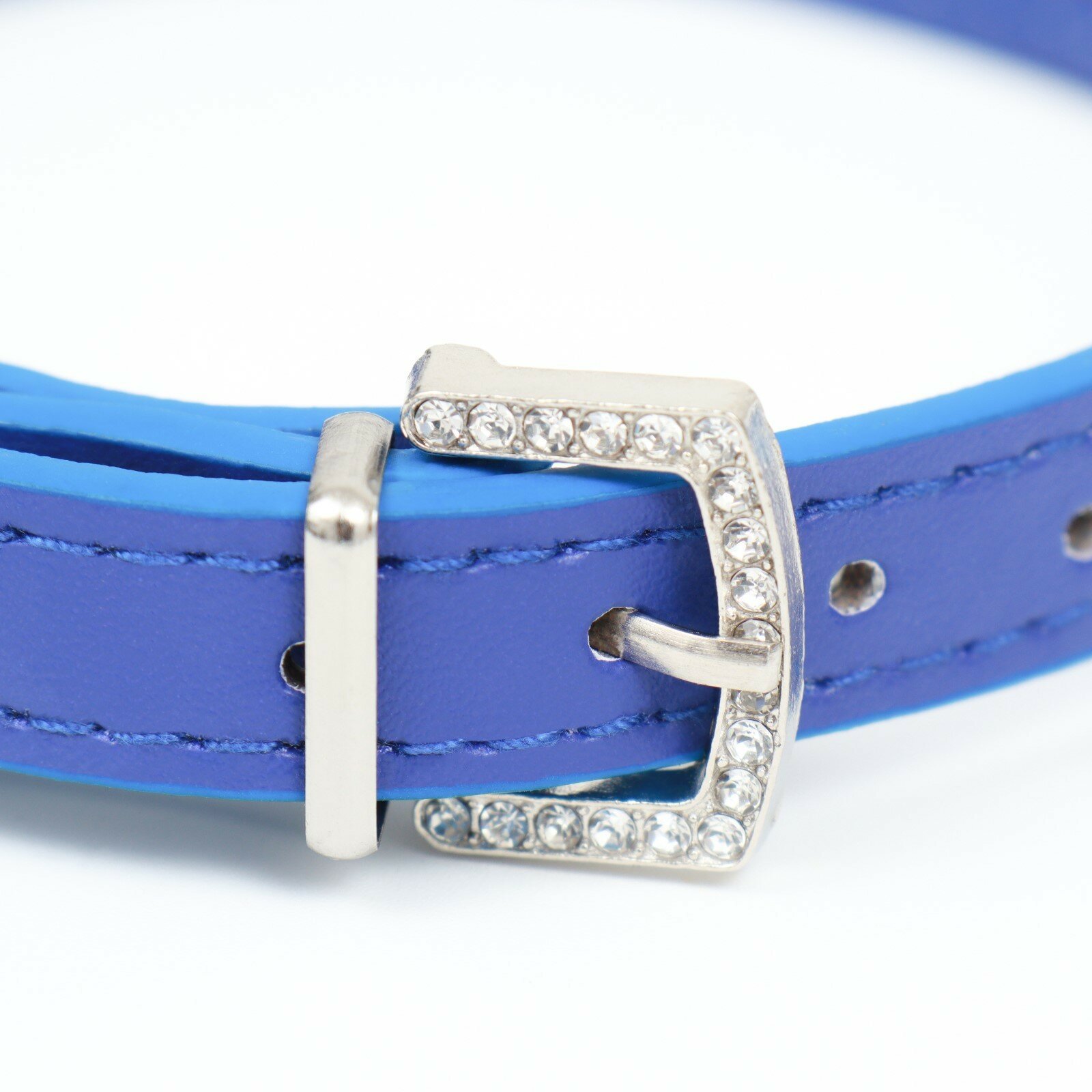 Ошейник со стразами в 4 ряда и стразы на пряжке, 40*1,5 см, синий