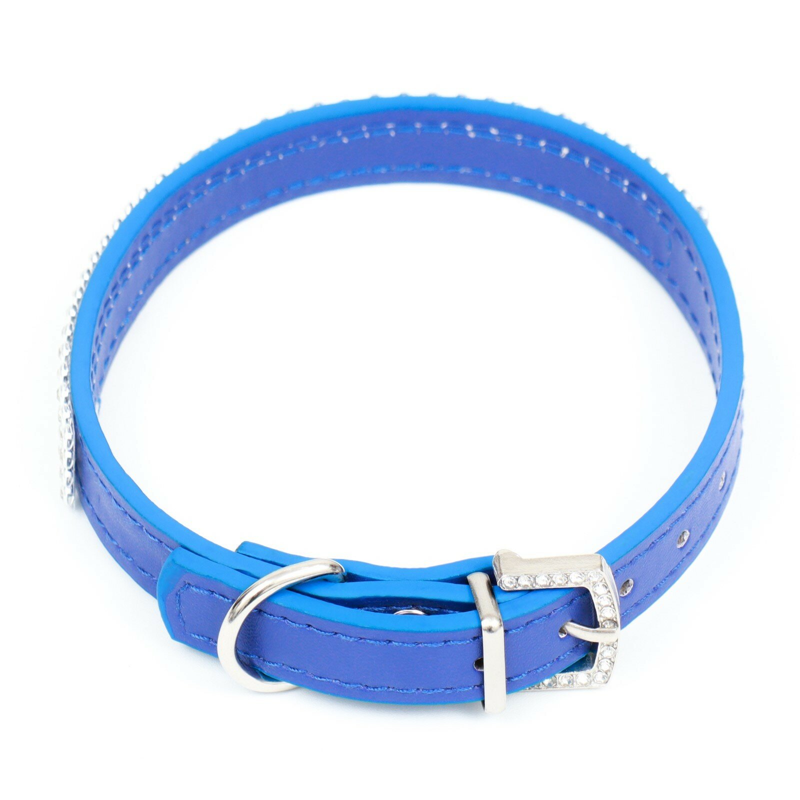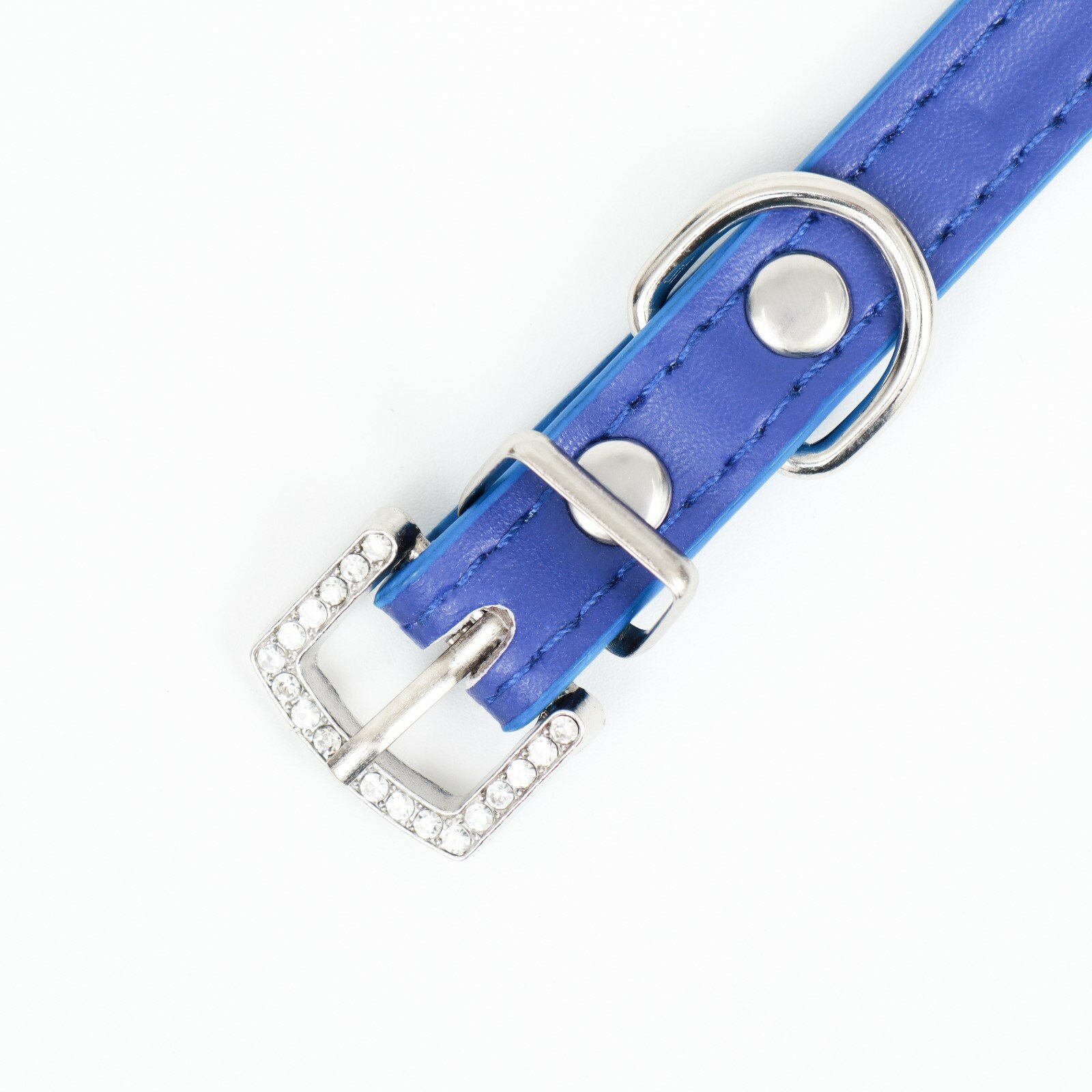 Пижон Ошейник со стразами в 4 ряда и стразы на пряжке, 40 х 1,5 см, синий