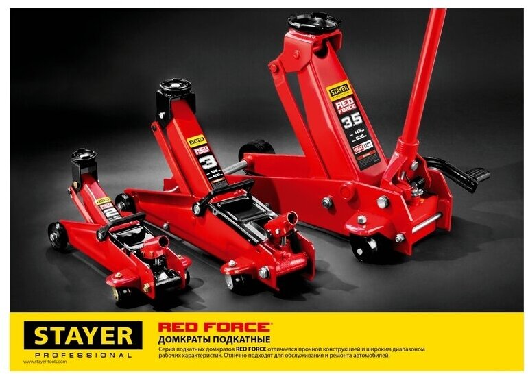 Домкрат Stayer 43153-2 гидравлический подкатной red force 2т 130-350мм 43153-2 .