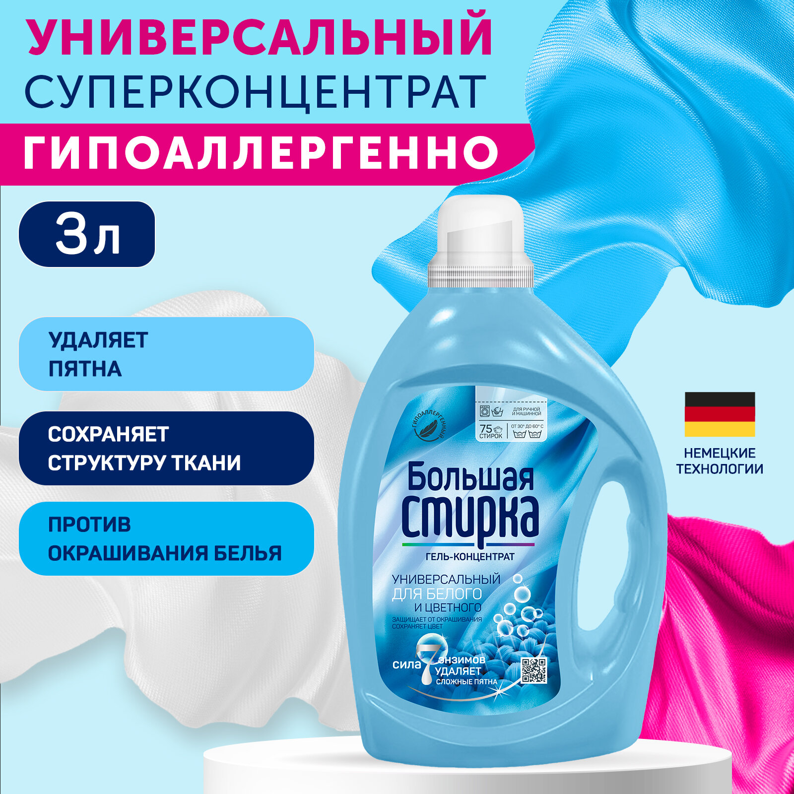 Большая стирка Гель для стирки Universal 2 в 1, большая стирка, 3 л