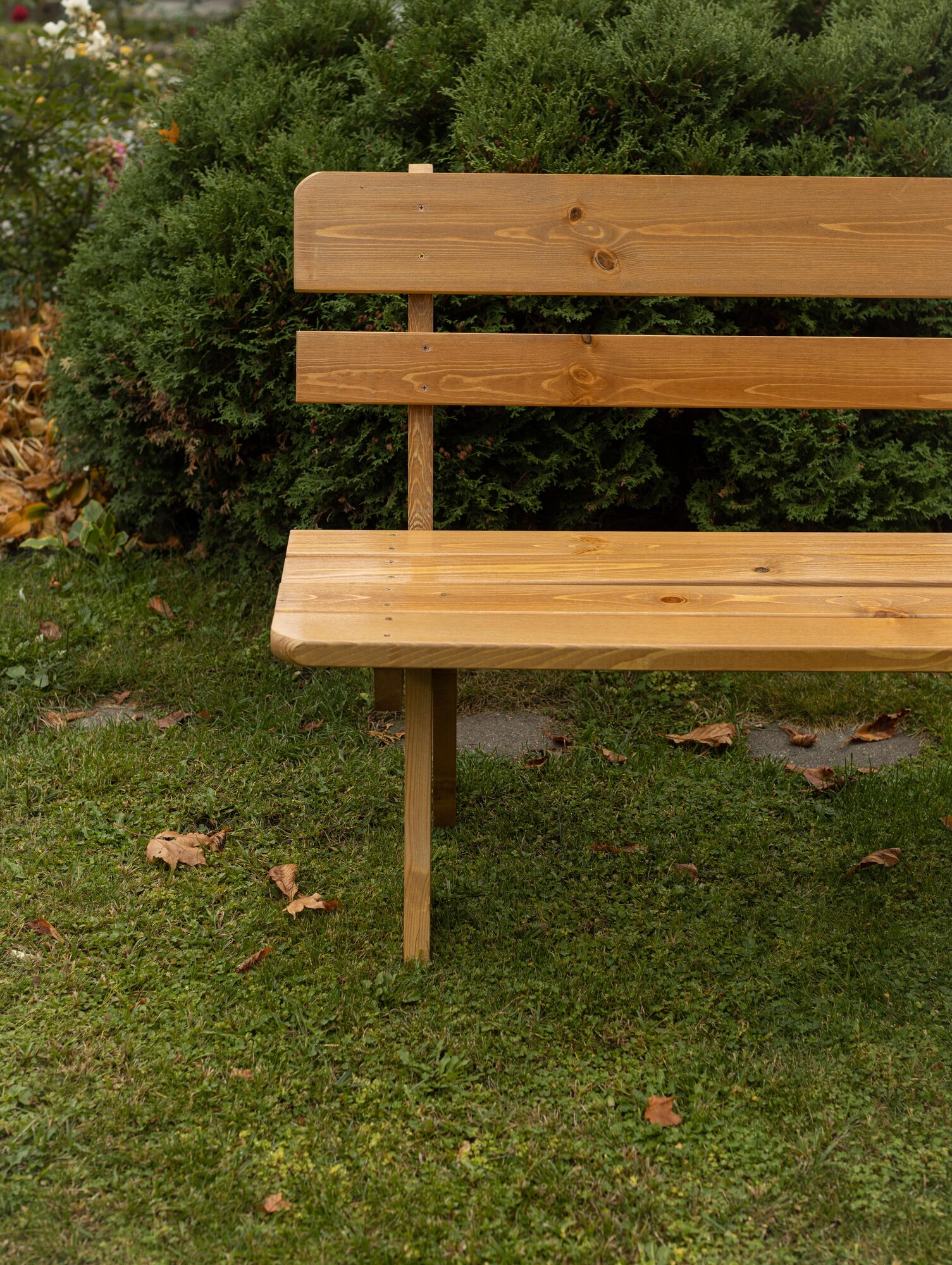 Скамейка садовая Классика с деревянными спинкой и сиденьем без покраски, лавочка для дачи с металлическим каркасом
