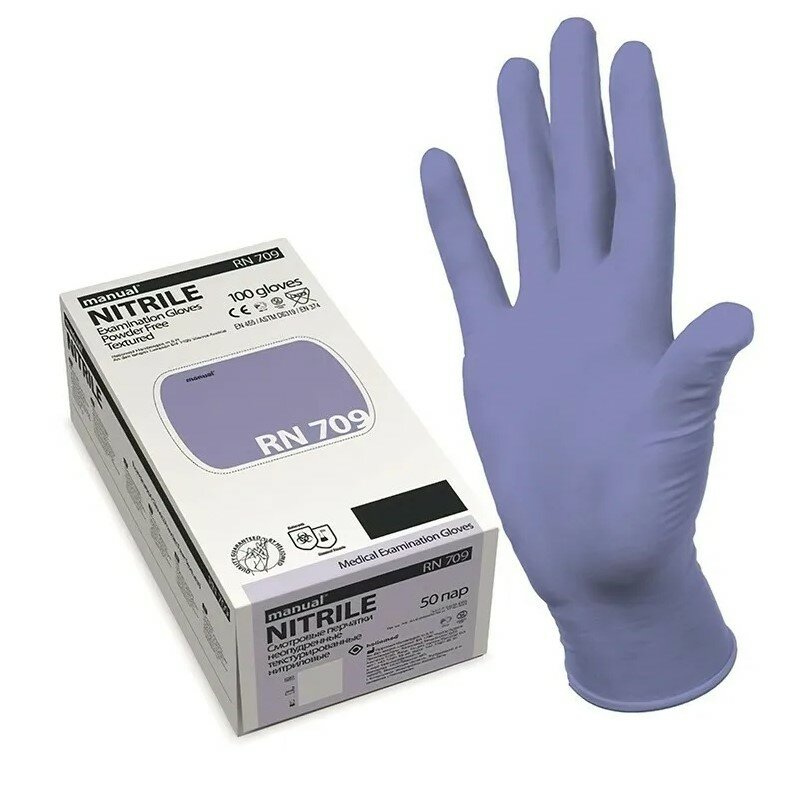 Перчатки смотровые нитриловые Manual RN709, цвет: светло-сиреневый, размер XL, 100 шт (50 пар)