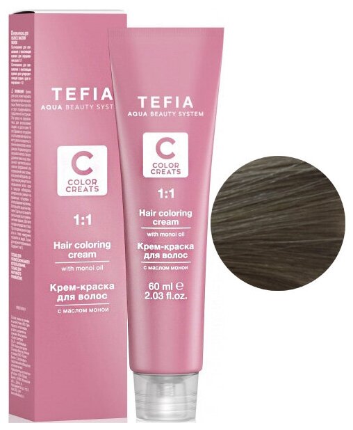 Крем-краска с маслом монои TEFIA Color Creats, 60 мл (7.81 блондин шоколад пепельный)