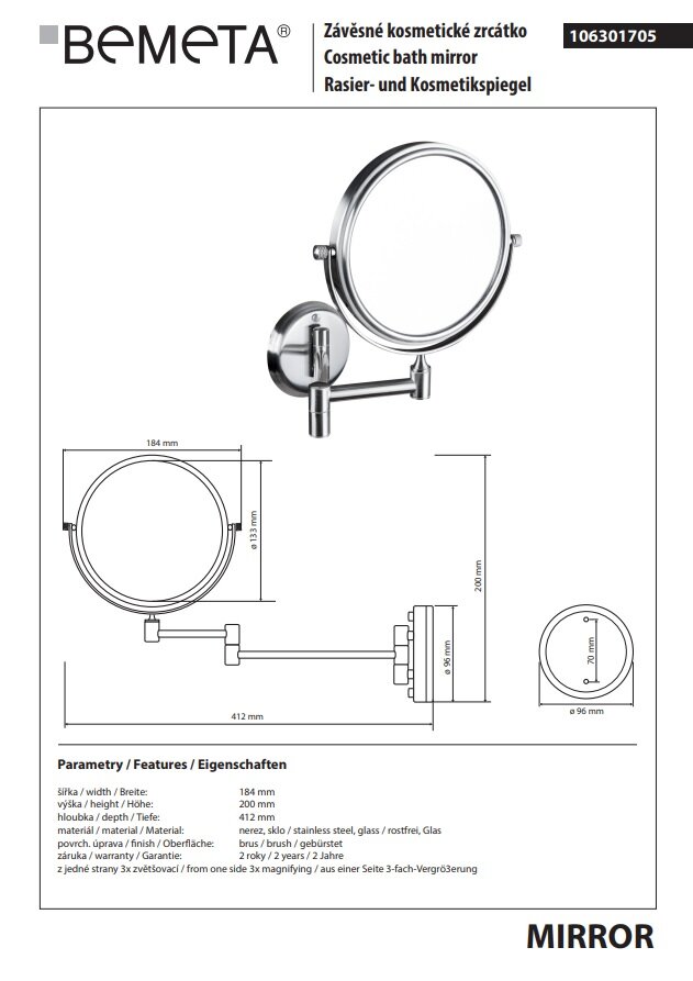 Ниже Вы можете прочитать отзывы на Косметическое зеркало Bemeta Retro d133, без подсветки, матовая сталь 106301705, ознакомится с подробными характеристиками, посмотреть интересные обзоры и фотографии на Косметическое зеркало Bemeta Retro d133, без подсветки, матовая сталь 106301705.