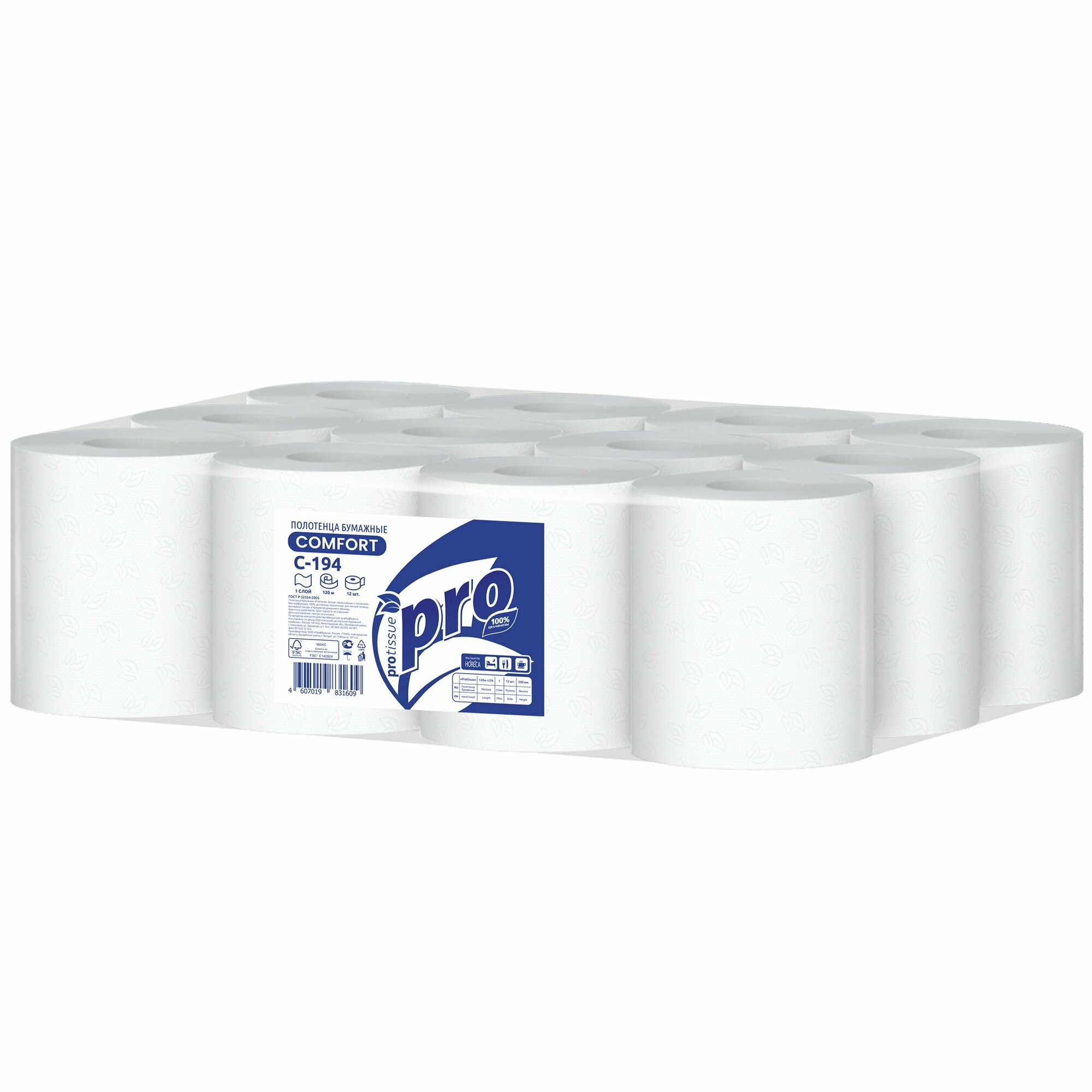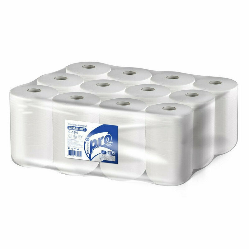 Полотенца бумажные PROtissue Comfort C194 однослойные, с центральной вытяжкой, 1 упаковка - 12 рулонов по 120 метров
