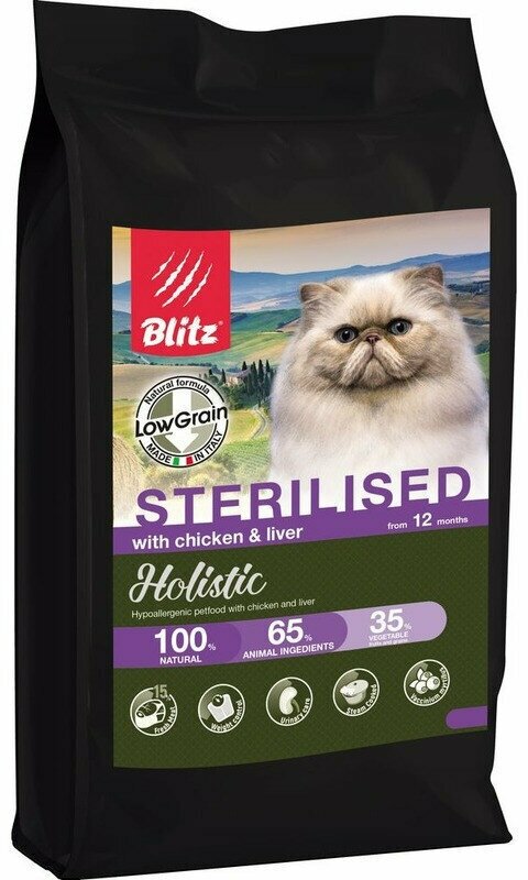 СохранитьBLITZ HOLISTIC CHICKEN & LIVER FOR STERILISED низкозерновой корм для стерилизованных кошек всех пород, Курица/Печень 5кг. интересное: