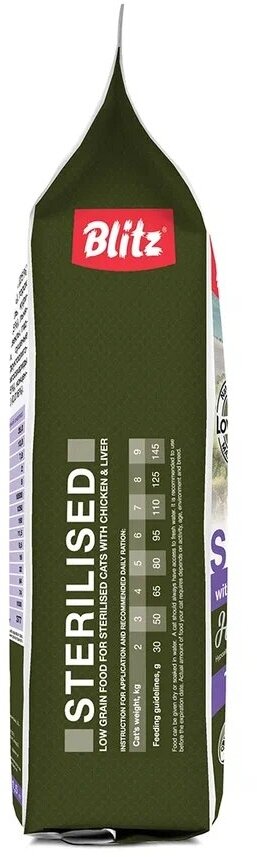 BLITZ HOLISTIC LOW-GRAIN ADULT CAT STERILISED CHICKEN & LIVER низкозерновой для взрослых кастрированных котов и стерилизованных кошек всех пород с курицей и печенью (1,5 кг)