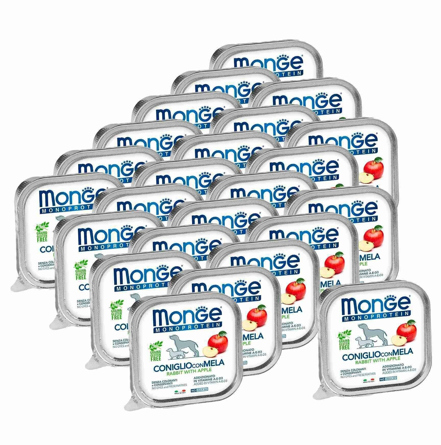 Купить Влажный корм для собак Monge Dog Monoprotein CONIGLIO con MELA, беззерновой, кролик, с яблоком, 24 шт. х 150 г