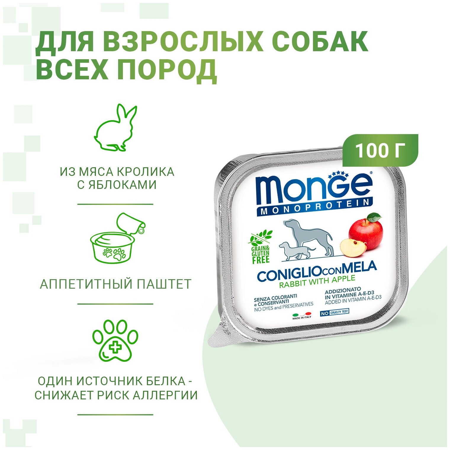 Влажный корм для собак Monge Dog Monoprotein CONIGLIO con MELA, беззерновой, кролик, с яблоком, 12 шт. х 150 г