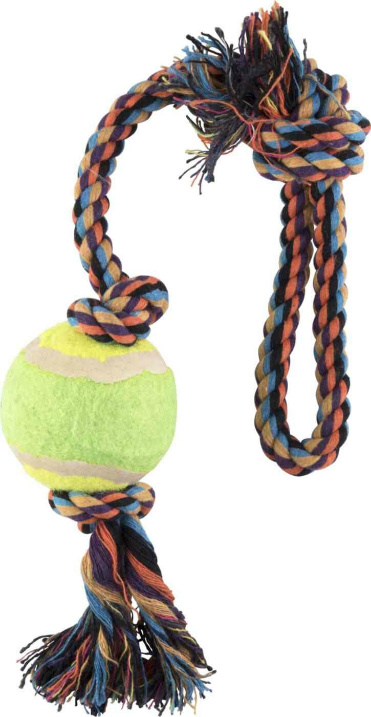 Игрушка д/собак Триол Верёвка цветная с мячом и 2 узлами 41 см 12111029