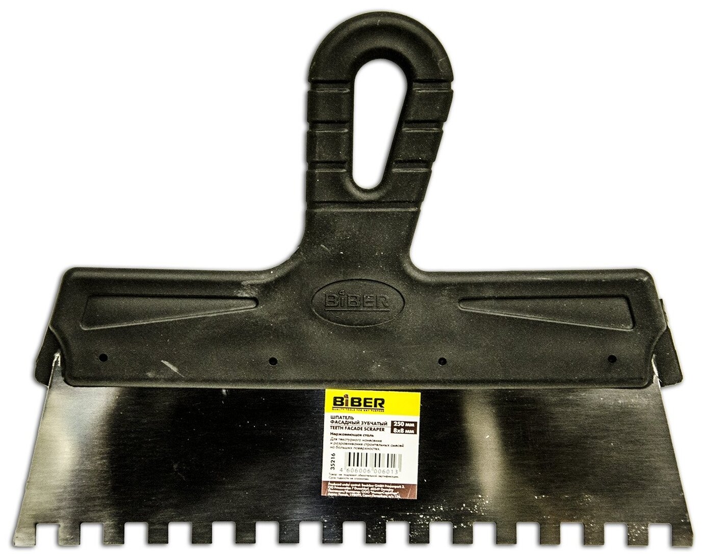 Фасадный зубчатый шпатель (250 мм, нержавеющая сталь, 8 мм) Biber 35216 тов-048250