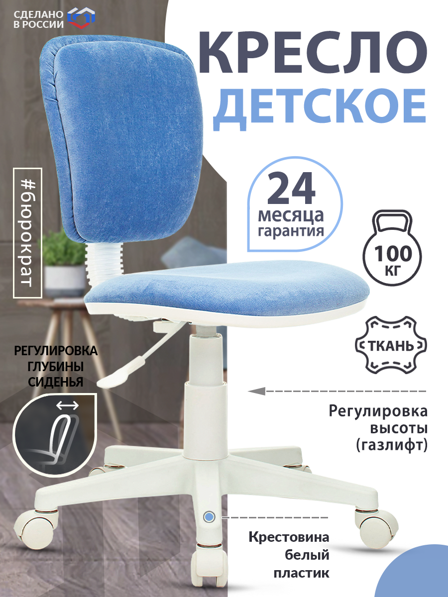 СохранитьКресло детское Бюрократ CH-W204NX голубой Velvet 86 крестов. пластик белый пластик белый интересное: