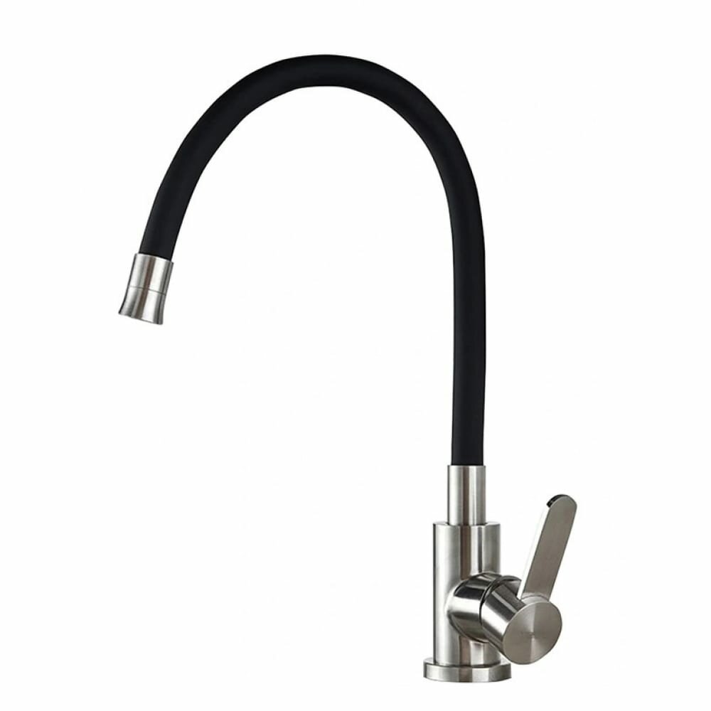 Смеситель для кухни, нерж.ст.+ силикон. излив (черный) Ledeme, 1/10; L74004-2