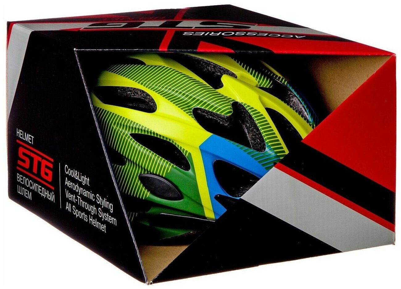 Шлем STG MV29-A, цвет: салатовый, синий, черный. Размер M (55-58 см)