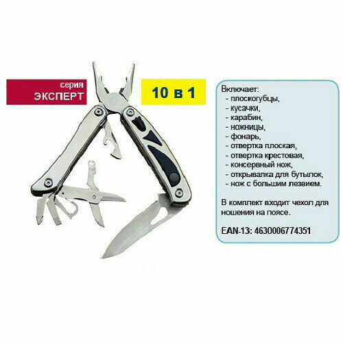 Мультитул ПРАКТИКА 774-351 Эксперт плоскогубцы 10 в 1, в блистере
