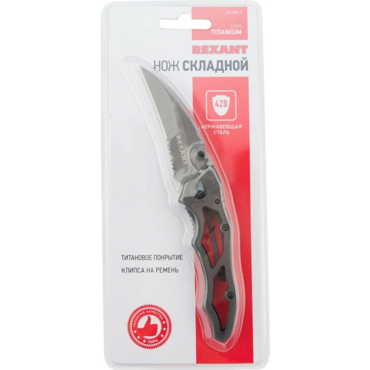 Нож Складной Коготь Полуавтоматический Rexant Titanium Rexant 1249062 REXANT арт. 12-4906-2