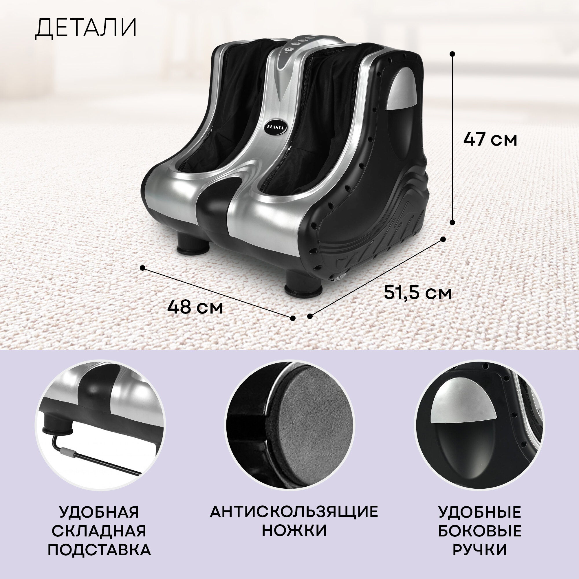 PLANTA Массажер для ног электрический MF-7S стопы, лодыжки, икры, вибромассаж, подогрев, панель управления интересное: