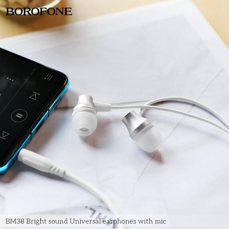 Наушники внутриканальные Borofone BM38, Bright sound, микрофон, кнопка ответа, регулятор громкости, цвет серебряный